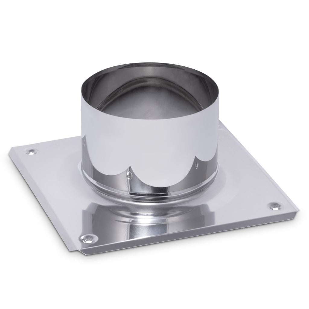 BCA160 – Base adapter for mounting CWL rotating chimney caps. Made from high-quality stainless steel (grade 1.4404, thickness 0.6 mm) providing excellent durability and corrosion resistance. Features adjustable mounting holes for secure installation on various chimney types.