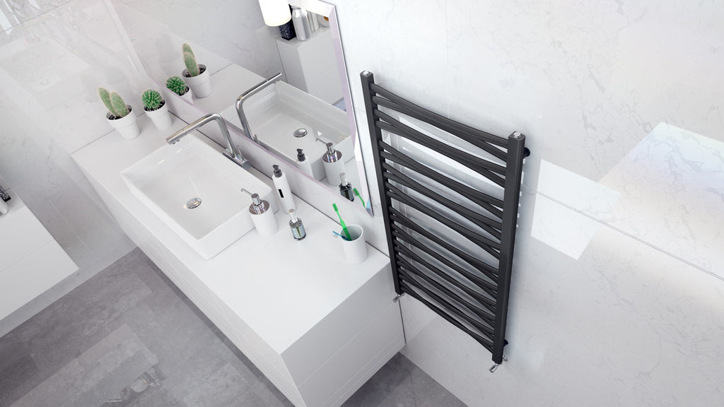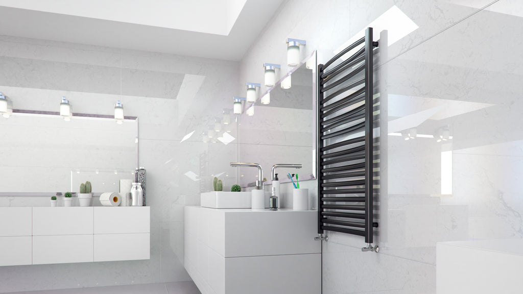LVR12050B-3D – Heated towel rail providing efficient heating and towel warming for bathrooms with hot water central heating connection.