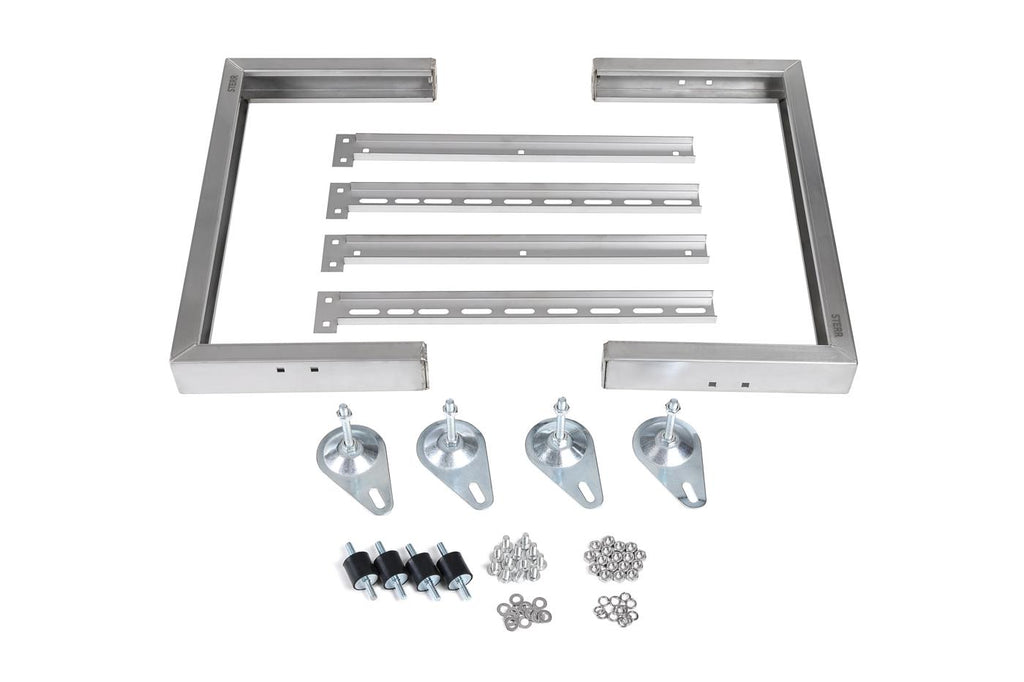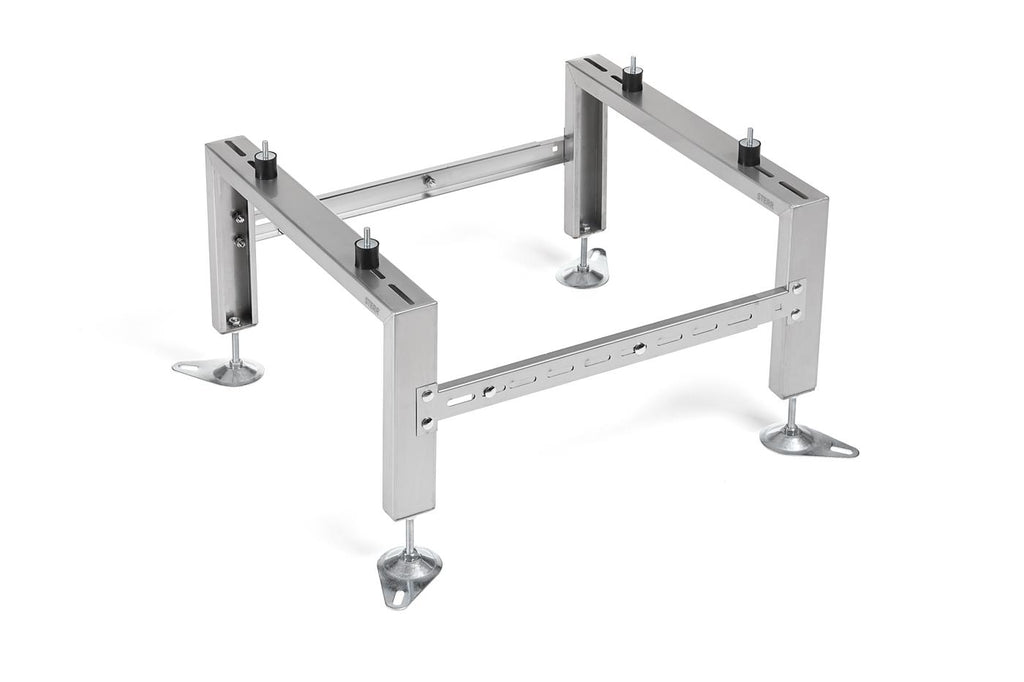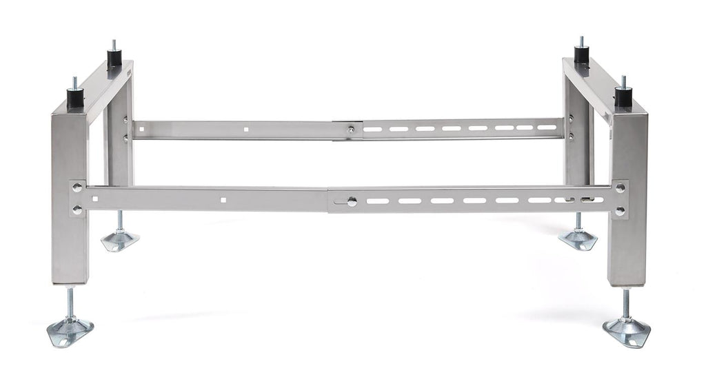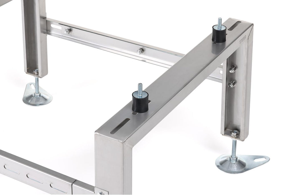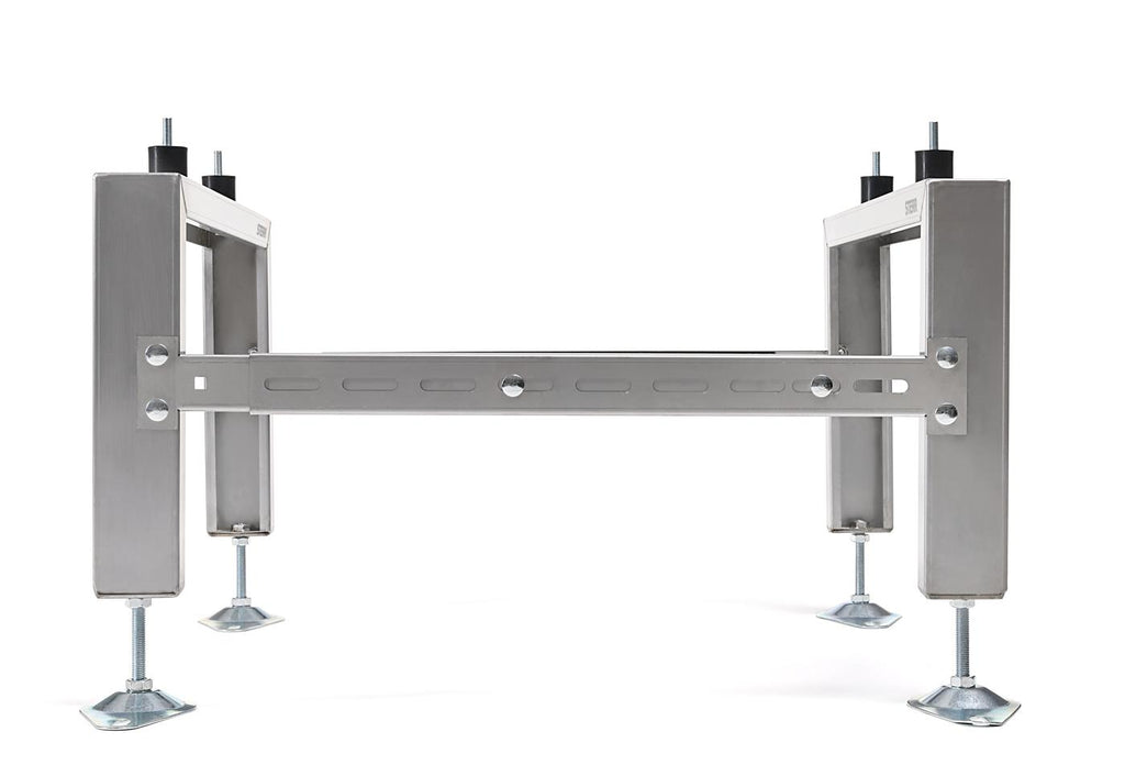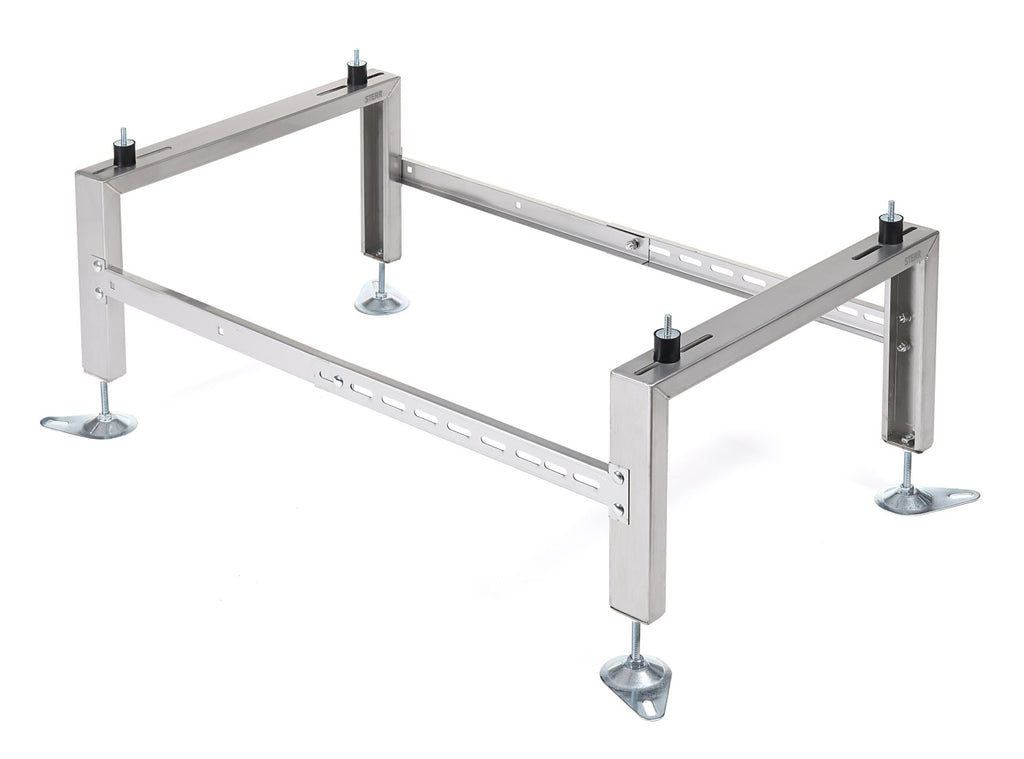 HSA500 – Professional floor stand for an air conditioner or heat pump with adjustable dimensions (length 600-1040 mm, width 560 mm, total height 300 mm + 90 mm feet, installation width 280-535 mm, installation depth 540-975 mm) and impressive load capacity up to 500 kg (material tests show up to 700 kg). Made of high-quality 2 mm thick stainless steel (grade 304) ensuring maximum stability.